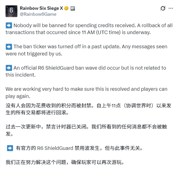 面对失控的局势,育碧已紧急关闭PC、PS5、Xbox等全平台服务器及游戏内市集,